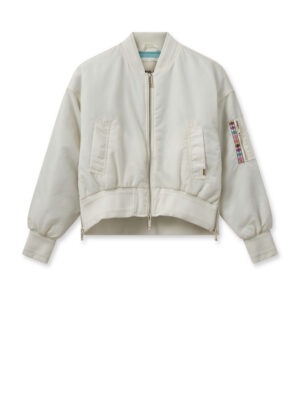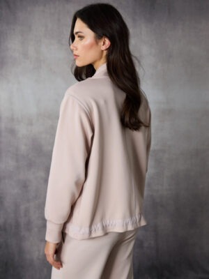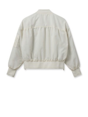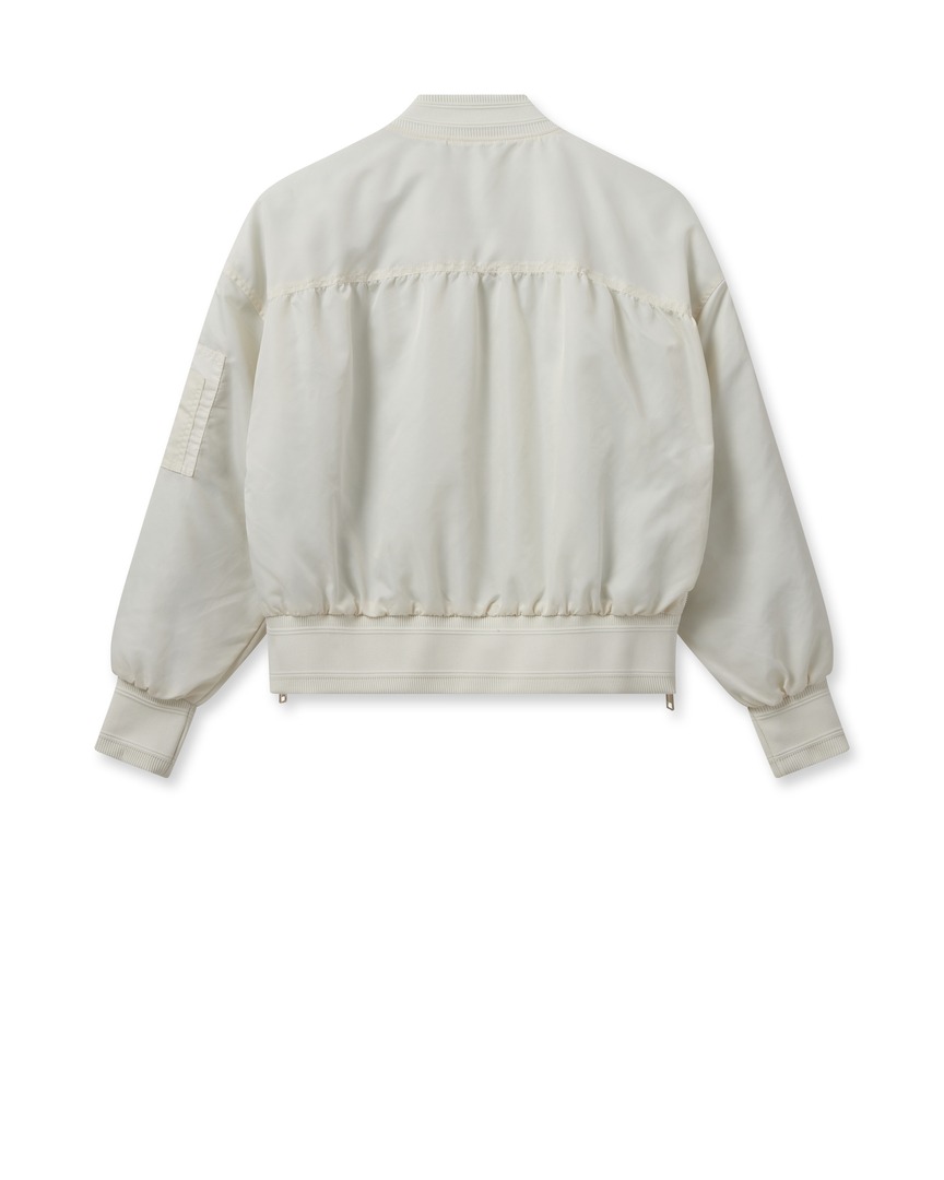 Introducing our premium bomber jacket, crafted from smooth, high-quality fabric. This jacket features all the essential details you need: pockets, a secure zipper closure, and elasticated neckline, hem, and cuffs. We’ve added unique touches such as a pleat at the back, a contrasting stripe on the zipper, and side zippers that create stylish slits, offering both versatility and a distinctive edge to your look.