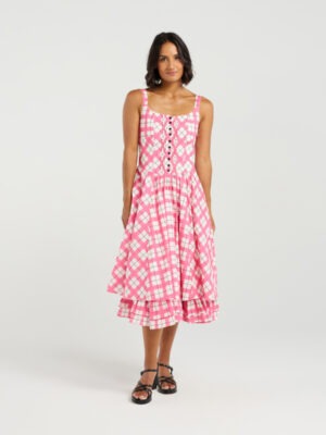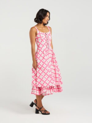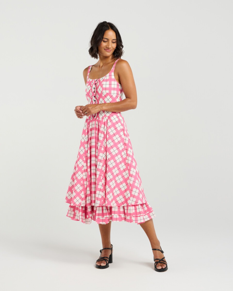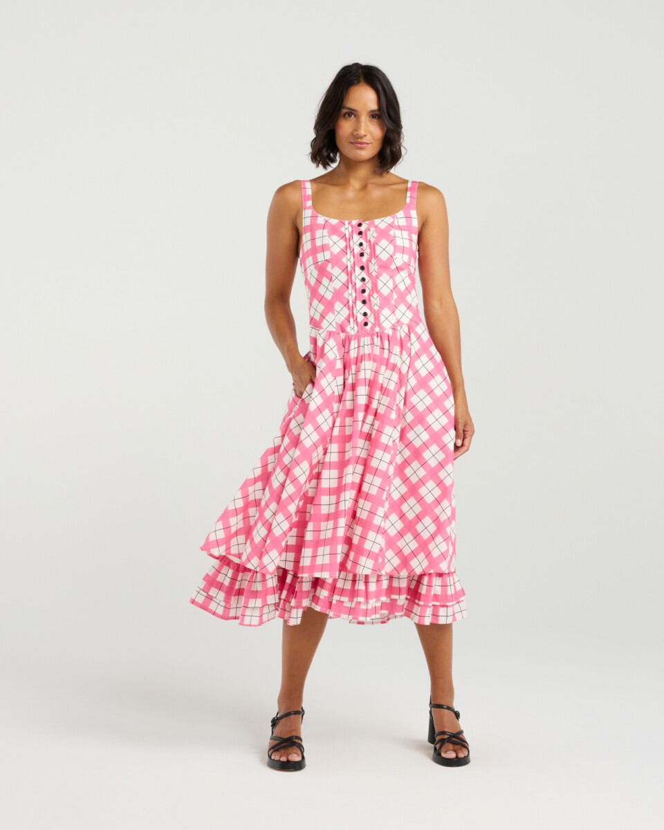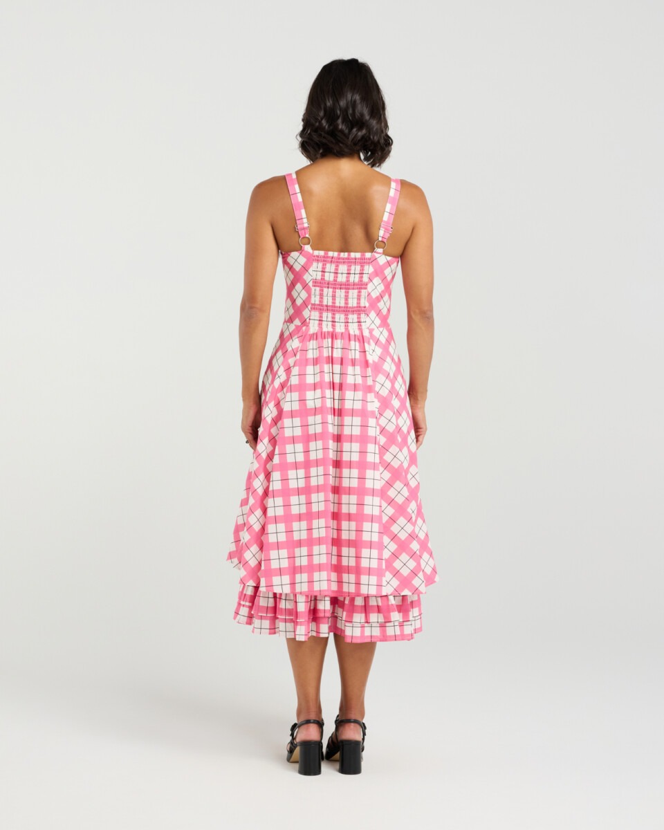 Floaty, flirty, and full of charm—this strappy dress is made for twirling. With a fitted bodice and smocking at the centre back, it hugs you in all the right places while keeping things comfy. The full skirt, complete with dreamy underlayers, adds just the right amount of volume and movement. Perfect for sunshine days, garden parties, or anytime you want to feel a little extra magical.