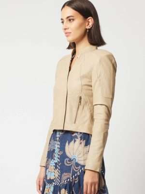 Introducing our new Lyra leather jacket in our stunning Oatmeal colourway. Taking inspiration from one of our best-selling styles the Mahal, this jacket features striking design lines and shoulder panels, a hidden zipper front closure, a stand collar and functional side pockets. The perfect jacket to transition you from day to night.