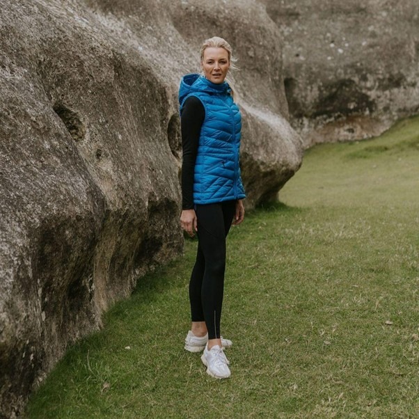 Mary-Claire vest by Moké is a lightweight down vest. A durable, warm layer. LIke all Moké, this packs into a travel bag (included), and has a fantastic warmth to weight ratio. This style can be worn on it’s own, under another jacket as an insulation layer, or over a long sleeve top.