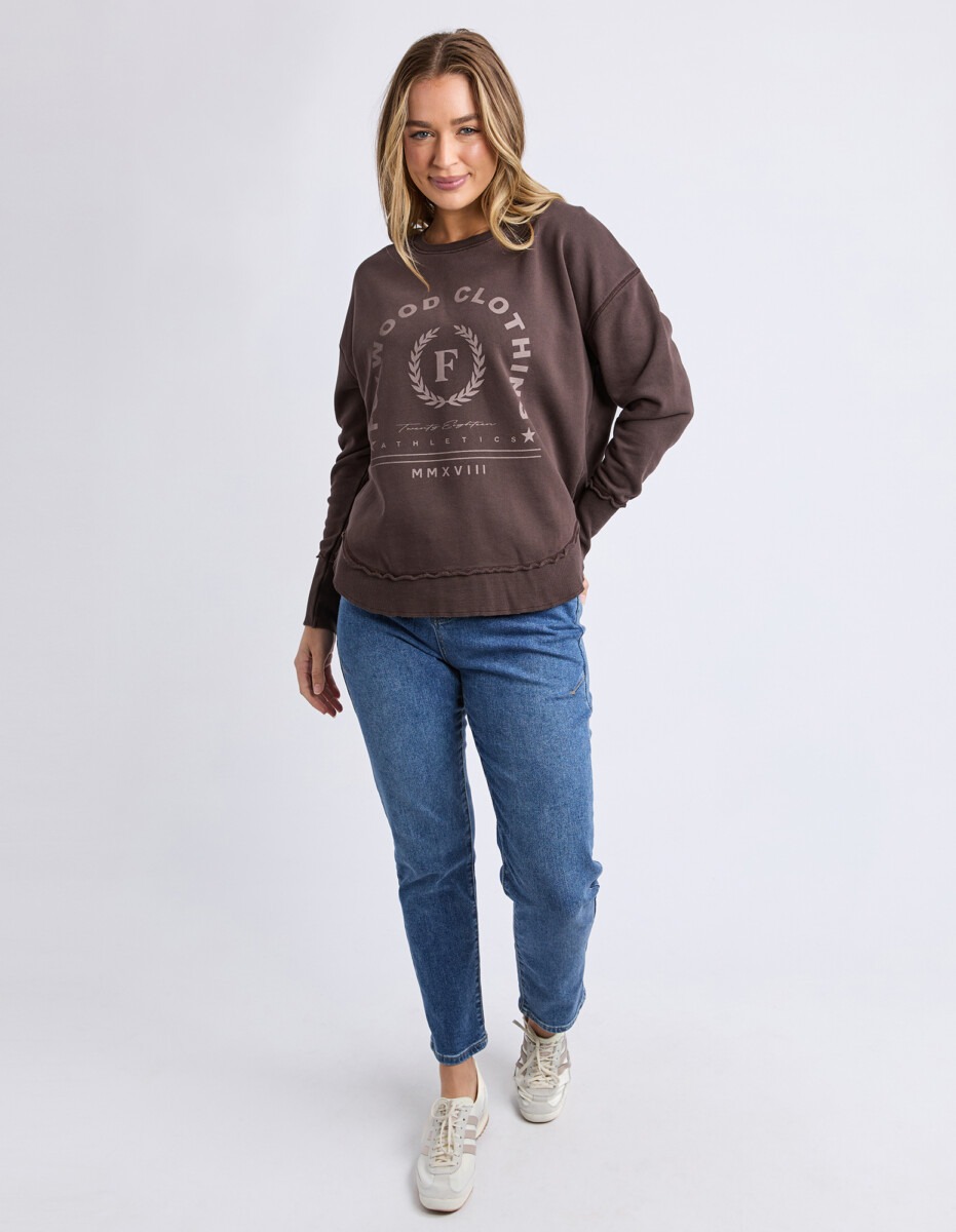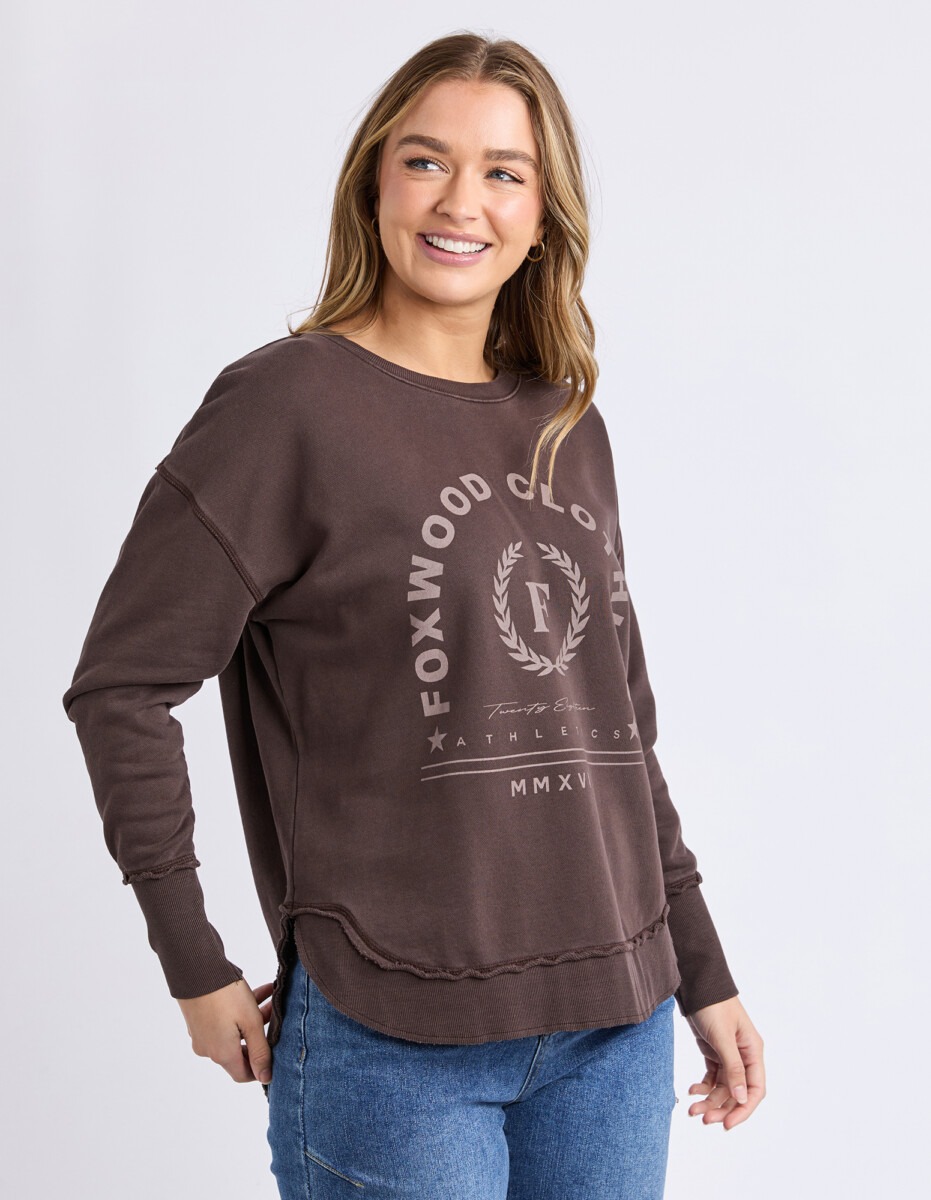 Set to win all the medals this best selling shape from Foxwood has had a sporty LeisureFit makeover. Featuring a tonal chest graphic and raw edge detail, this vintage washed crew is an everyday award winner!