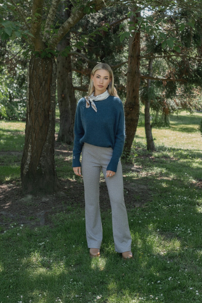 • Long raglan sleeves with knitted panel details and folded cuff featuring button