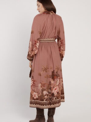 Exclusive print. Side pockets for functionality. Button-through front closure. Removable self-fabric waist tie