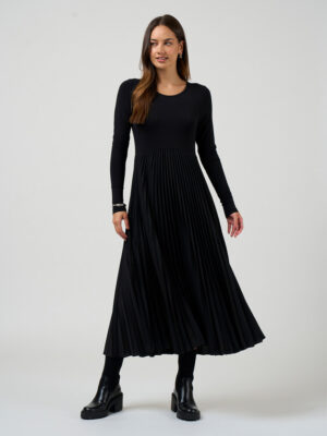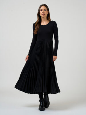Embrace winter in this divine midi length dress, featuring a permanent sunray-pleated skirt and soft slim fitting long sleeve crew neck bodice, perfect for layering.