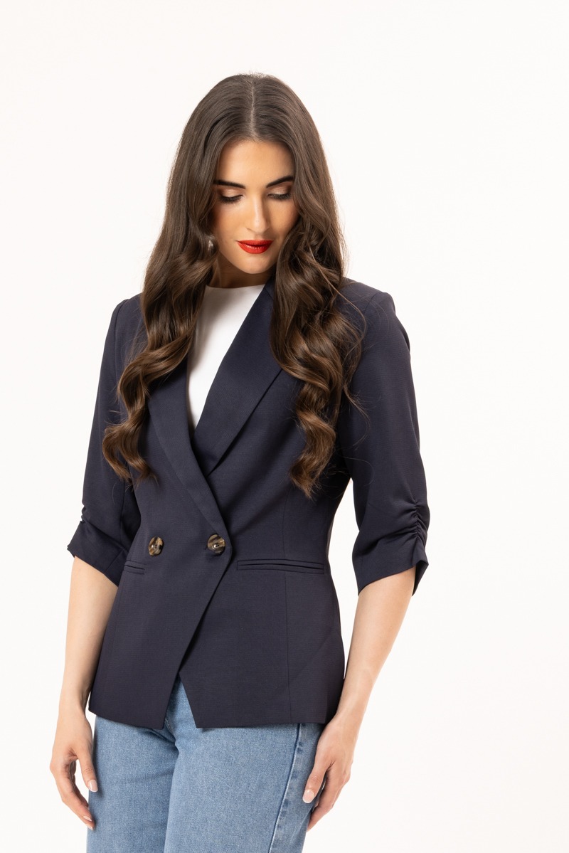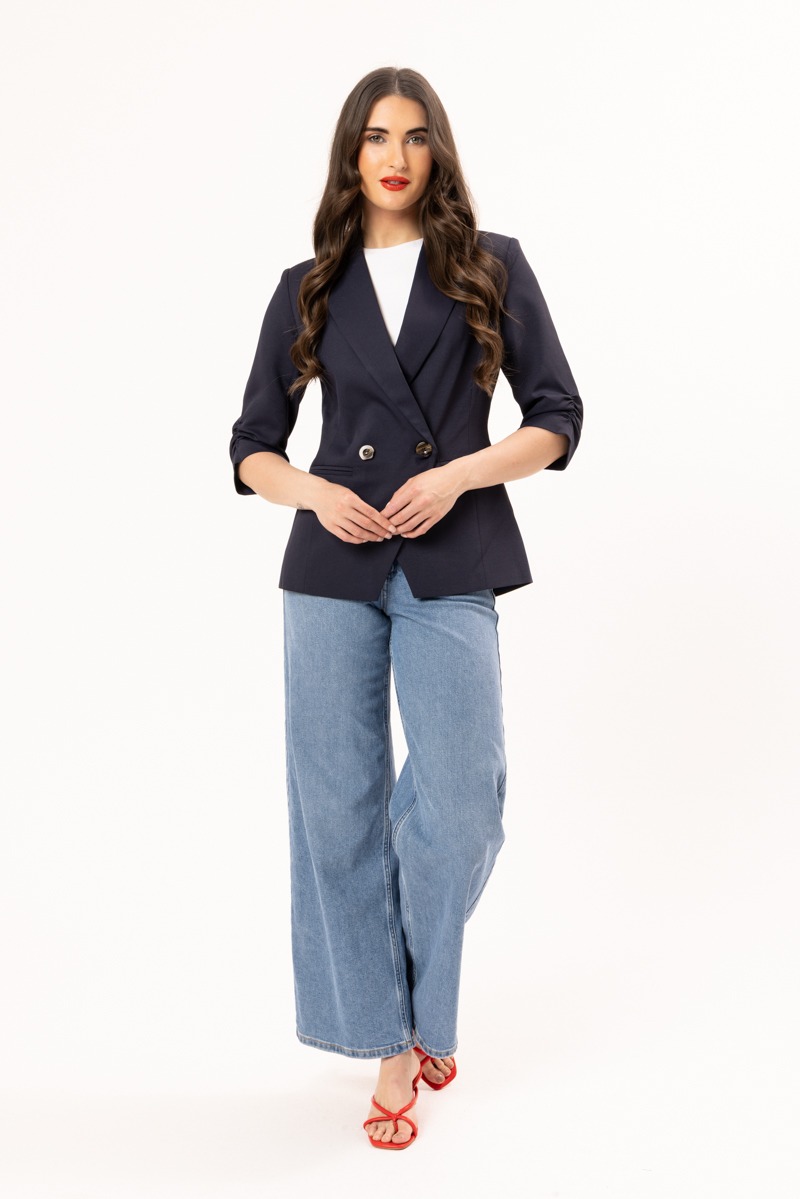 The Billie the Label Occasion Blazer brings effortless sophistication with its crisp double-breasted design and chic elbow-length sleeves. A polished layering piece that elevates any outfit, whether you’re dressing for work, events, or an elegant night out.