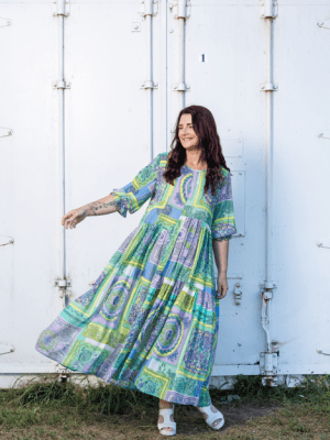 Jellicoe famous Patrice Dress. This soft fabric dress with texture and ruffles, forms this feminine style.