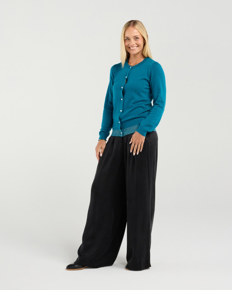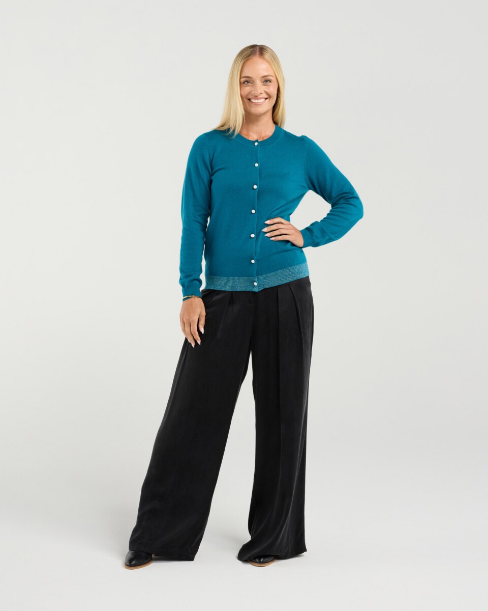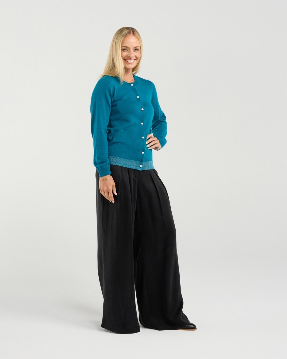 Blackstone’s Pearl Button Front Cardi is a cozy, effortlessly chic knit you’ll want to live in this season — soft enough for layering, polished enough to wear on its own. Crafted from a warm wool blend, the delicate pearl buttons and classic silhouette make it perfect for weekend brunches or dressing up jeans for a night out.