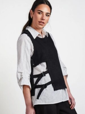 The Plush Jersey Vest is edgy, fashion-forward, and infinitely wearable, a piece that blurs the line between utility and art, comfort and statement.