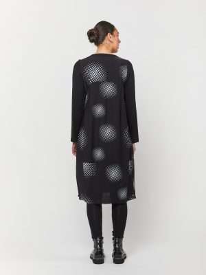 Elevate your wardrobe with the stylish Queenie Cocoon Dress, featuring a flattering V-neckline and a classic black base adorned with a playful white spot viscose print.
