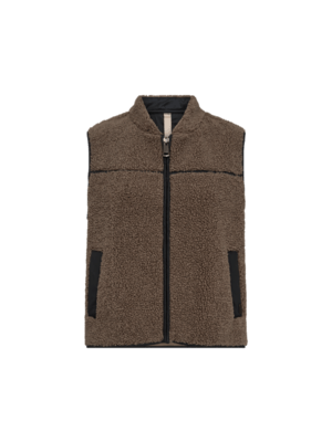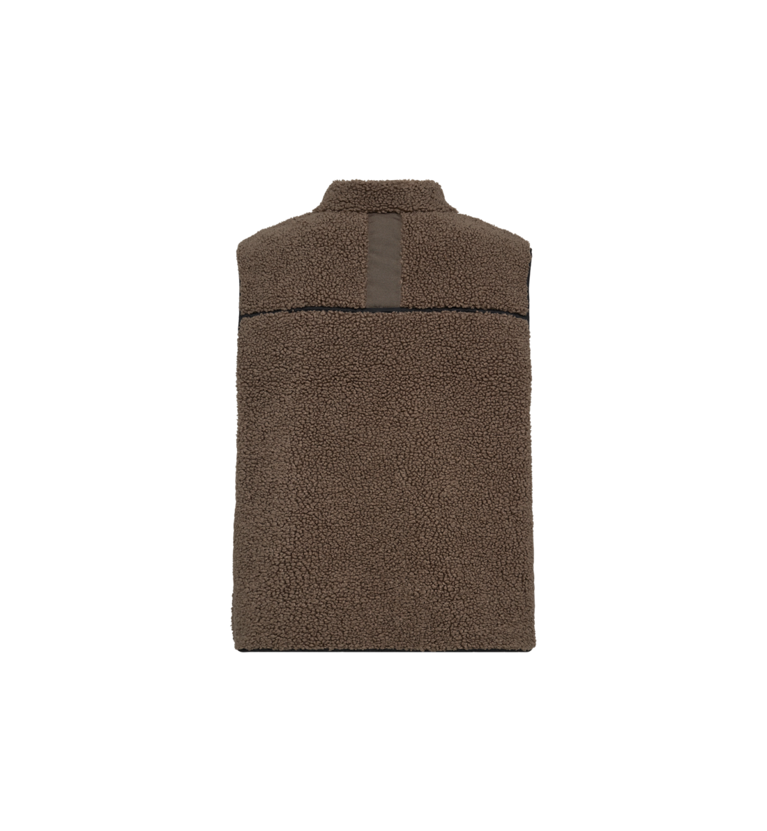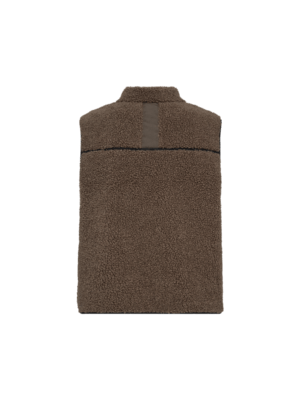 A soft teddy vest designed for layering and effortless comfort. The sleeveless silhouette features a front zipper closure and practical side pockets, creating a modern utility feel. Wear it over a shirt or knit for a cozy yet elevated everyday look.