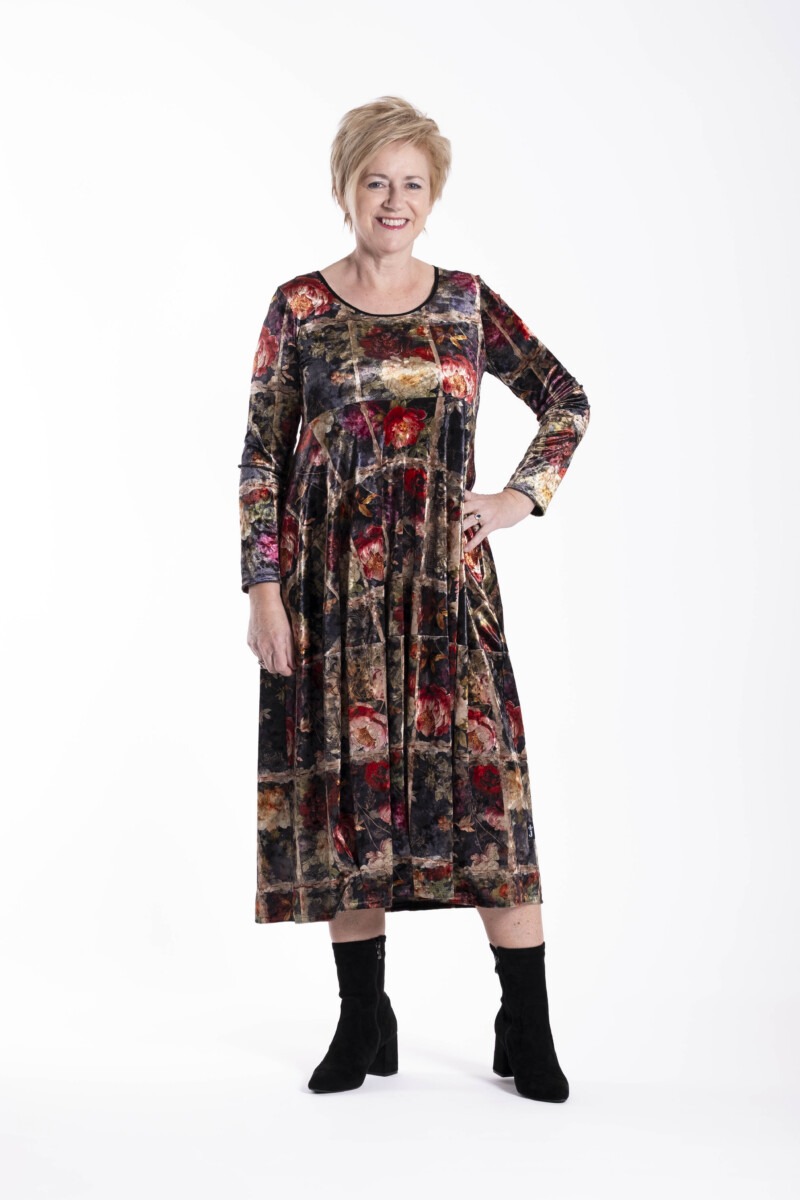 This is a softly structured women’s dress designed with a relaxed fit and elegant shaping through the body. Featuring clean lines and subtle construction detail, the Sanderson Dress offers a timeless silhouette that feels both comfortable and refined. Made in a beautiful soft velvet, this style has a luxurious depth and gentle drape that elevates the overall look.