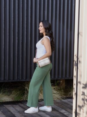 The Shade Pant in Natural is made from a breathable cotton-linen blend with contrast tan stitching throughout. A centre front seam runs cleanly down each leg, and flap patch pockets add a utility-inspired touch. The wide leg, ankle-grazing cut is finished with a zip fly and belt loops for a polished yet relaxed look.