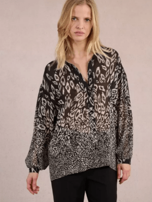 Designed in France. Elevate your wardrobe with this stunning, printed voile shirt, in semi-transparency. Featuring long sleeves, buttoned cuffs, shirt collar. Full-length front button closure.