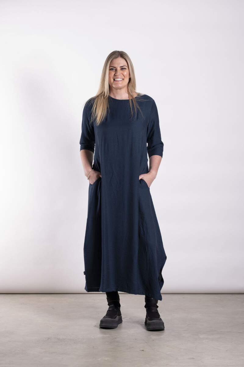 The Sienne Dress is a sculptural, softly structured silhouette designed to flatter through considered panel shaping and subtle waist definition.