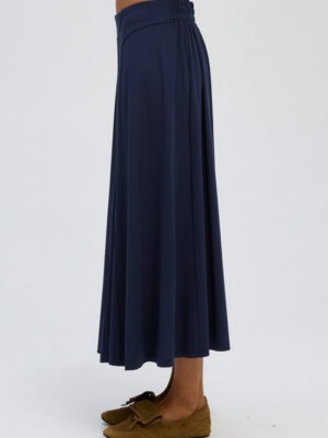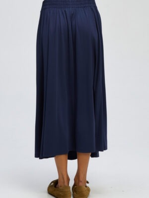 A timeless ink coloured midi skirt designed with a flattering high-rise waistband and softly flared silhouette. The smooth, flowing fabric creates elegant movement while offering all-day comfort. Perfect for dressing up or down, it pairs effortlessly with knits, blouses, or tailored pieces for a polished finish.