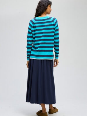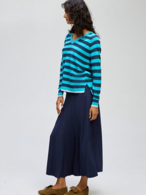 A timeless wardrobe staple with a fresh, modern feel. This lightweight V-neck knit features bold horizontal stripes and a relaxed, easy fit for everyday comfort. Designed with long sleeves and a flattering neckline, it’s perfect for layering or wearing on its own. Available in a range of vibrant colour combinations to brighten your seasonal style.