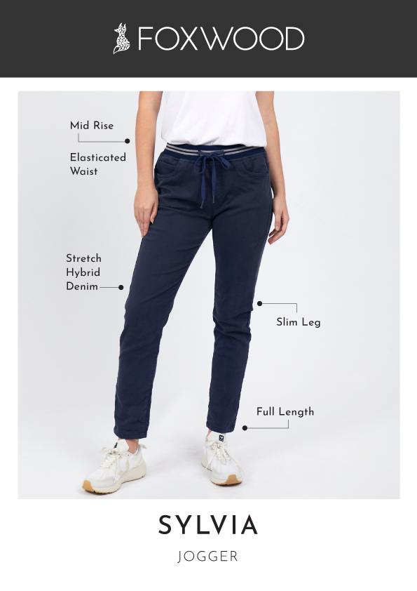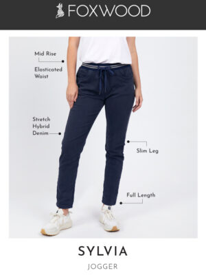 The Sylvia Jogger is a comfy pair of relaxed pants. Constructed from a super soft, two-way stretch cotton drill in a midweight fabric with 2 side pockets, 2 back pockets and an elastic waistline with soft drawstring.