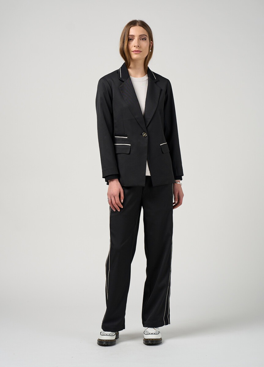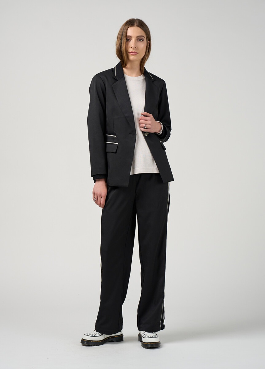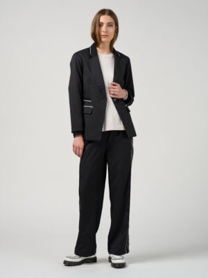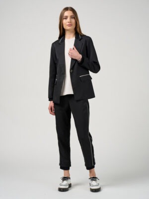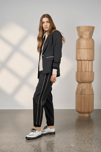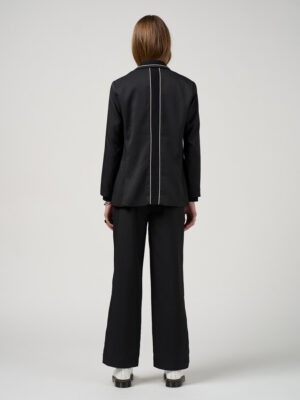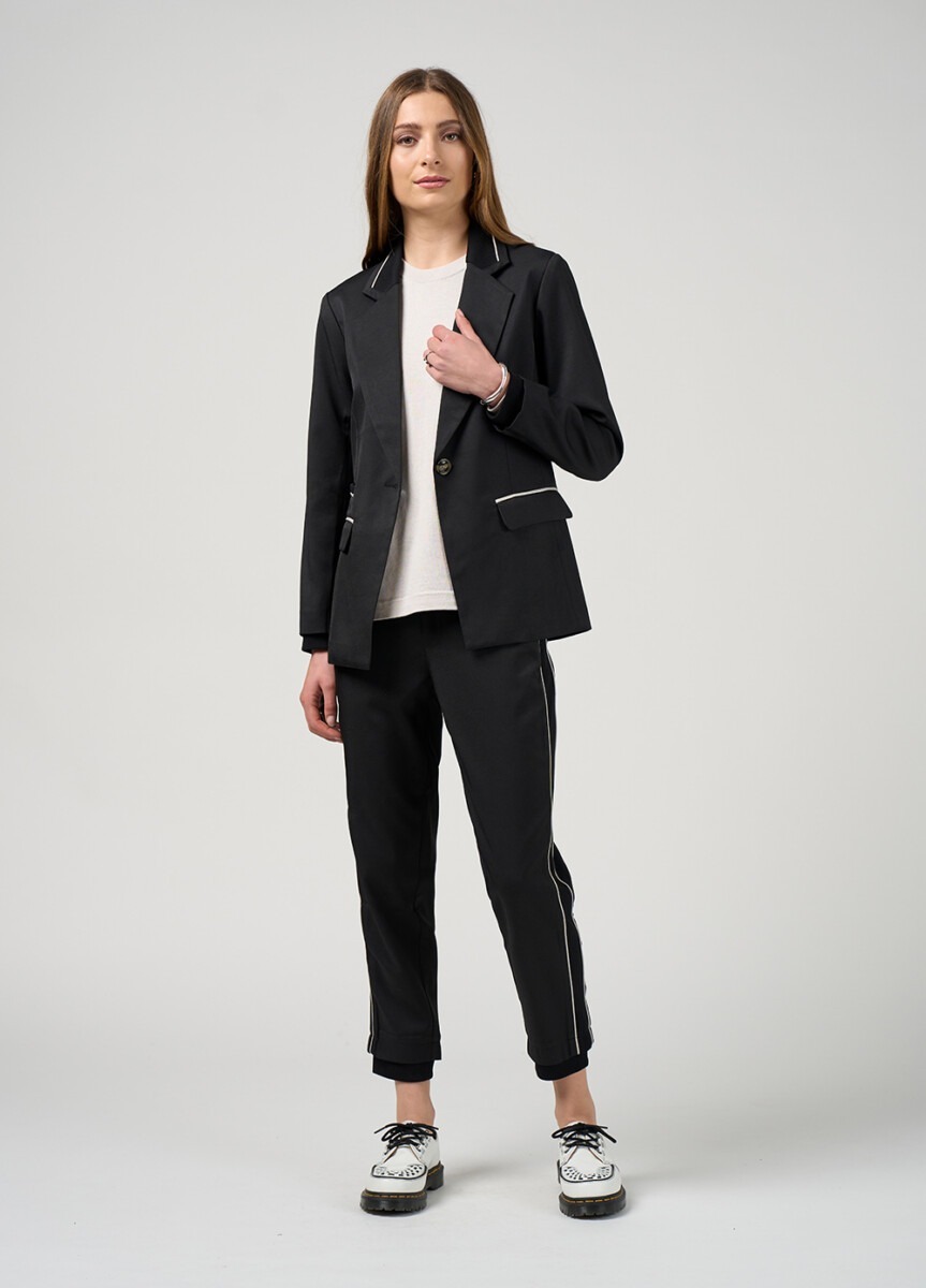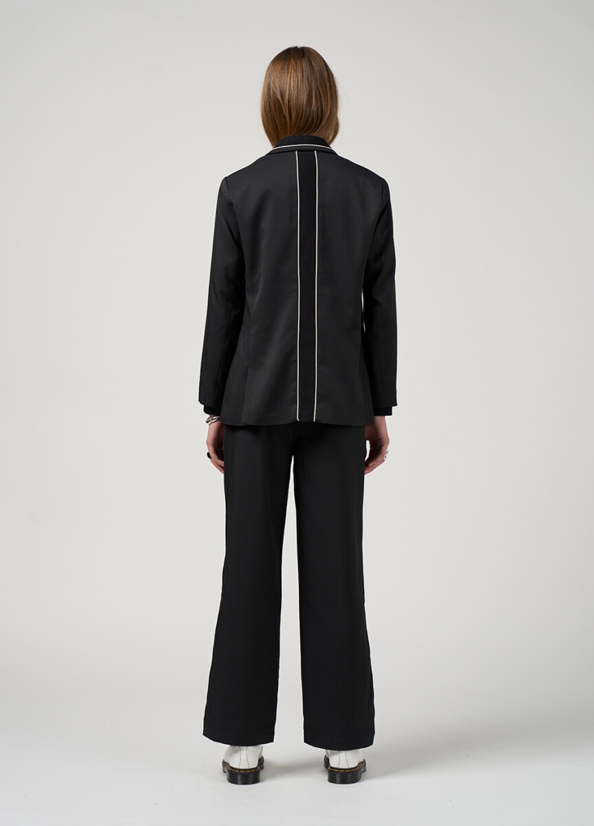 Stunning sophistication in this relaxed tailored jacket, featuring rib insert panels at the collar, centre back, pocket and internal cuffs and fine contrast insert piping.