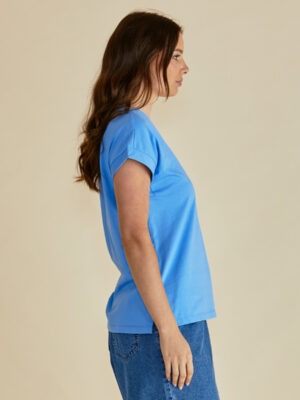 Crafted from 100% cotton slub jersey, the Tracy V-Neck Cotton Tee from Betty Basics features a V neckline with edge trim tapering down to V point, short cap style extended sleeves, below-hip length and a straight slight high low hem with side splits. The relaxed fit and classic colourway options create an easy style comfy look.Â